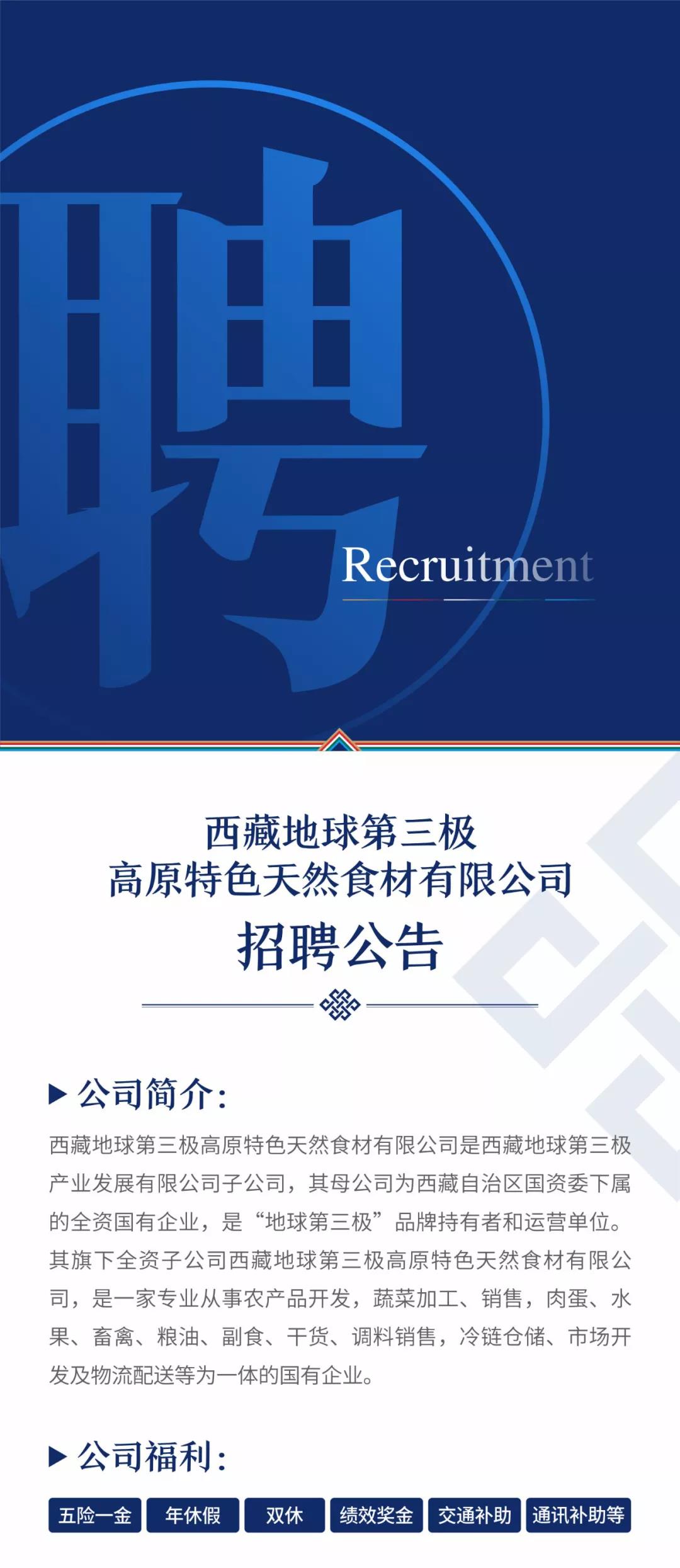 西藏地球第三极高原特色天然食材有限公司招聘公告